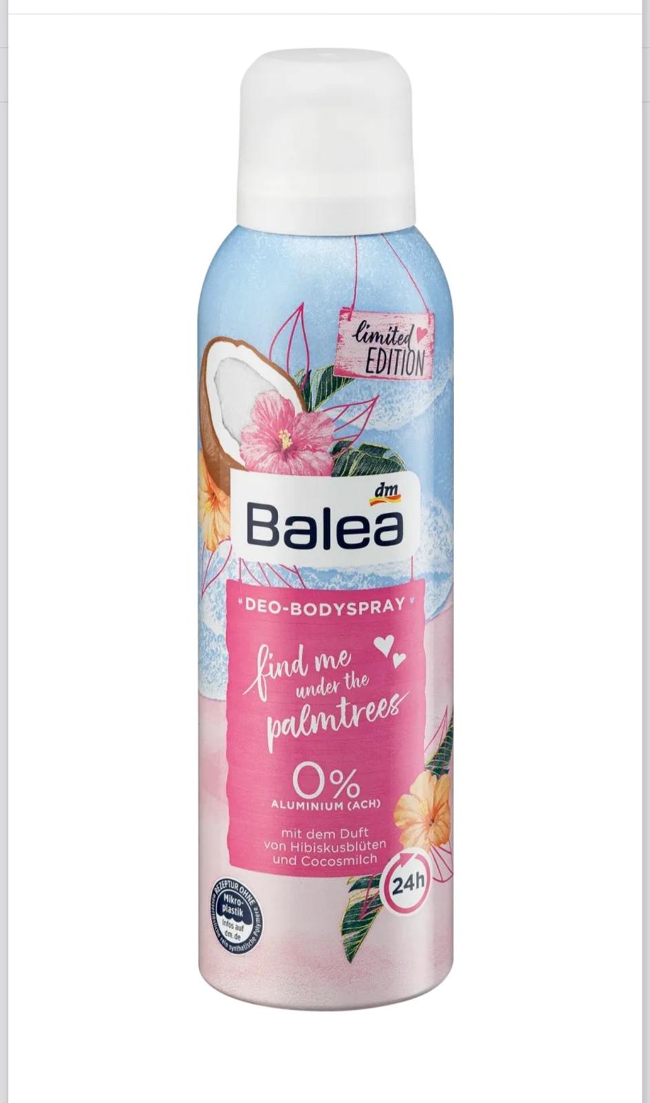 Začnite deň s pocitom dovolenky! S dámskym dezodorantom v spreji Balea Find me under the Palmtrees to nebude žiaden problém. Dezodorant ponúka 24-hodinovú ochranu pred nepríjemným zápachom a dlhotrvajúcu sviežosť po celý deň. Receptúra dezodorantu po nanesení nezanecháva biele škvrny, je bez obsahu hliníkových solí a jemná k pokožke. Zaujme vás tiež príjemný letný dizajn výrobku. Nechajte sa zlákať očarujúcou vôňou kvetov ibišteka a kokosového mlieka a užite si svoj príjemný a rozmaznávajúci okamih starostlivosti.
