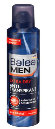 Balea MEN pánsky anti-transpirant v spreji Extra Dry so 48-hodinovou deo ochranou reguluje tvorbu potu, vysoko efektívne a dlhotrvajúco. Bez alkoholu (bez ethanolu). Zanecháva príjemne suché podpazušie. Vhodné aj pre aktívnych športovcov, ktorí chcú zostať dlhodobo svieži. Extra ochrana pred potením s Balea MEN Extra Dry antiperspirantom!