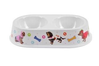 Biela miska s dvomi nadobkami, rozmery :23x10,5 cm. Materiál plast.cena 2,30 viac farieb