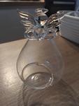 Dodanie 3 týždne. Je to krehká sklenená dekorácia, predajca to super pobalil takze prišla v poriadku. Otvor na klasickú čajovú sviečku je maly, takze použiť sa da ako dekorácia, možno fotku dať do vnútra alebo nejaké tie vzdušné rastlinky.