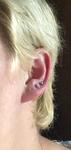 Nastreľovacie nausnice - strojček aj s náušnicou z chirurgickej ocele, sterilne zabalené. Už mám dve aplikované. Bezbolestne. Aplikovala som len na prestrelenie lalocika, na prestrelenie chrupavky sa neodporúča (tu treba prepichnut riadne ihlou, najlepšie v salóne kde s tým majú skúsenosti).