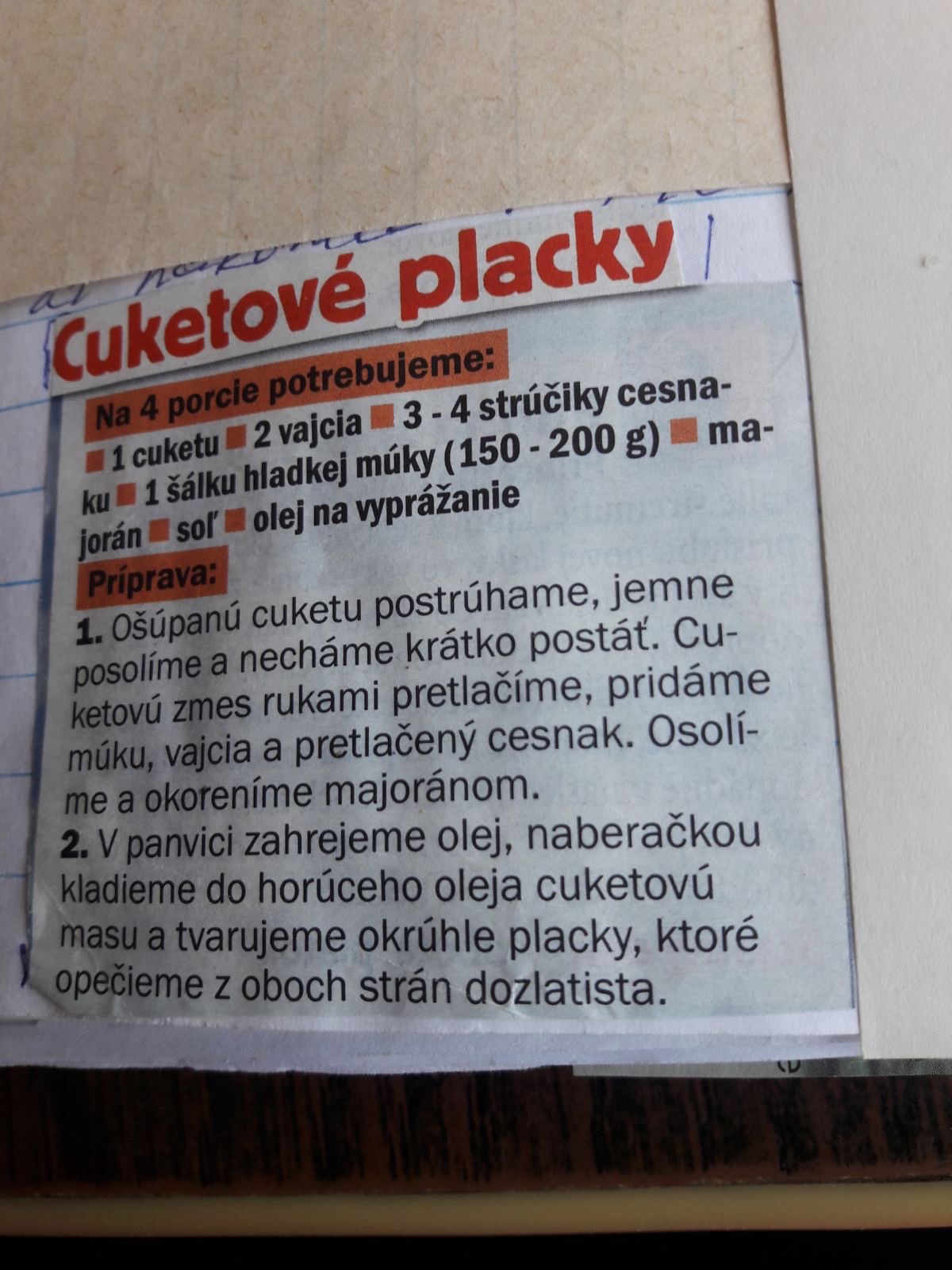 ja robievam tak že nastruham cuketu pridám pretlačeny cesnak,nastrúham zemiak,sol korenie majoran,sl.paprika,vajíčko,nastrúham syr,hl.múka zmiešam a pečiem na panvici