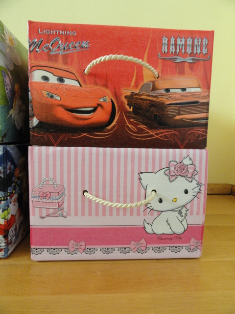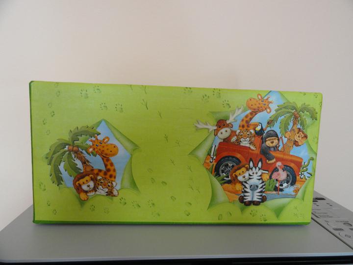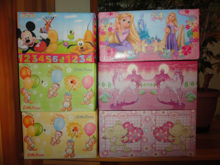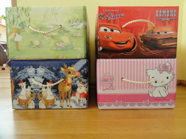 Milí kupujúci, boxy na hračky, ktoré predávam, som začala vyrábať najskôr pre svoje deti. Potrebovala som niečo pevné, čo sa len tak ľahko nepoláme (ako asi aj všetky ostatné mamičky), a zároveň aj poteší detské srdiečko. Urobila som ich naozaj neúrekom, kým som ich vypracovala do takej podoby, v akej sú teraz. Vždy bolo čo zdokonaľovať, vylepšovať a prišla som na to len vlastnými skúsenosťami. Boxy sú robené servítkovou technikou. Materiál je 4-vrstvová veľmi pevná lepenka, natretá aspoň 3x farbou a minimálne 2x prelakovaná, čím sa na nej vytvorí pevná vrstva. Takže po uschnutí má aj dospelý človek čo robiť, aby ju prehol v rukách. Servítka je riadne zalakovaná, aby sa nezošúchala, avšak poškodenie ostrým predmetom nevylučujem. Pri lakovaní používam len lak na detský nábytok, nemusíte sa preto báť o zdravie vašich detí. Ak máte akékoľvek otázky, rada odpoviem…