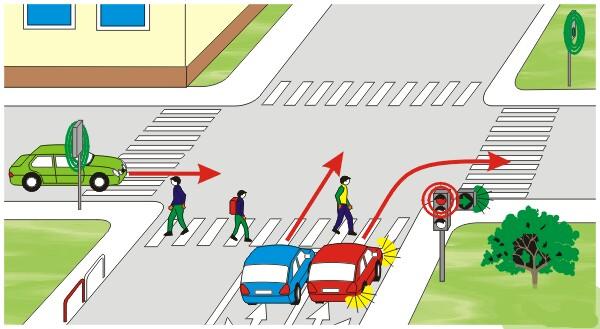 No ale tu nastáva problém, že zelené auto semafór nemá a nemá ani označenú hl.cestu, takže by sa malo riadiť pravidlom pravej ruky, či?