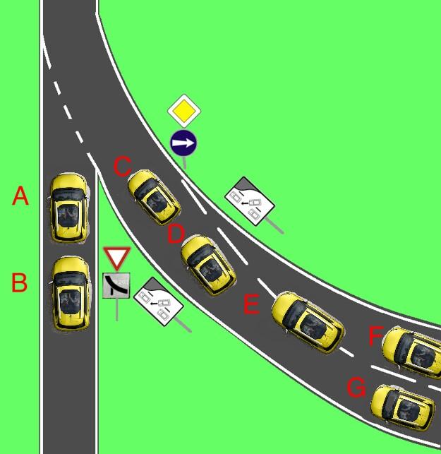 Ako to vlastne teda je? 😊V akom poradí prejdú autá A až G? Počítame s tým, že všetky správne používajú smerovky😉