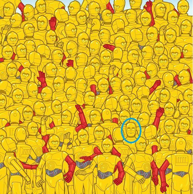 Ja už mám pred očami červeno žlté bodky 😀❤😀❤😀❤😀❤😀❤😀❤😀❤😀❤😀❤😀❤😀❤😀 ale v pravo dole je ododlišný panáčik.Nemá na hlave taký špic ako iný roboti a myslím že sa mierne usmieva.Alebo už mám aj oči prekrížené 😜😜😜😜😜