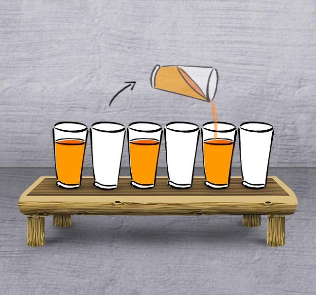 druhý plný prelejem do piateho prázdneho pohára😀