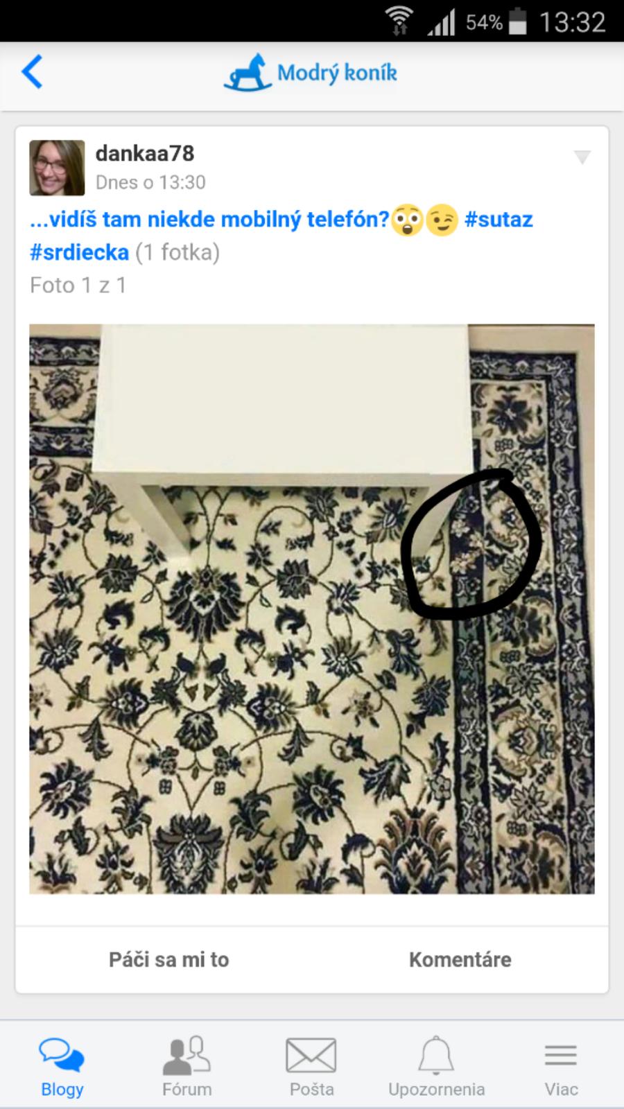 Ani som dlho nehľadala,pri pravej nohe dole na zemi kúsok trci 📱