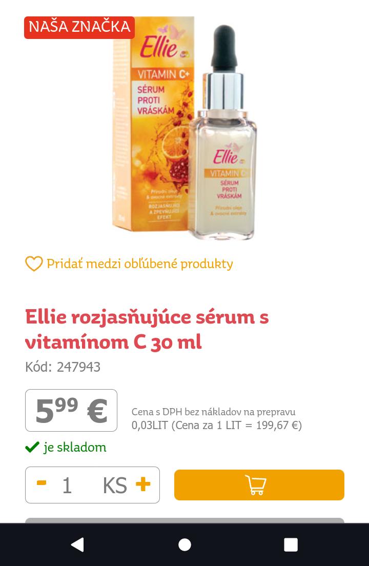 Nekupujem drahú kozmetiku, na značky si nepotrpím. Mám toto, aj hyalurónové sérum. Pri vitamíne C som spozorovala jemnejšiu, hladšiu pleť, žiarivejšiu, som nad mieru spokojná.