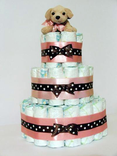 Trojposchodová plienková torta pre dievčatko