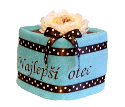 Uteráková torta z kvalitnej osušky s nápisom. Cena 15,90 Eur.