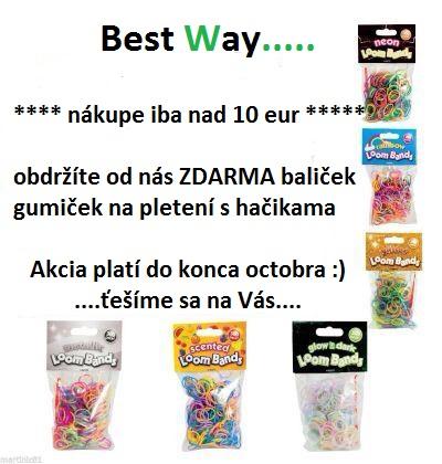 Akcia u nas nakupte u nas nad 10 eur a obdrzite gumicky na pletenie zdarma!!! Balicek obsahuje 300gumicek+12 hacikou ;) nevahejte akcia plati do konca oktobra!