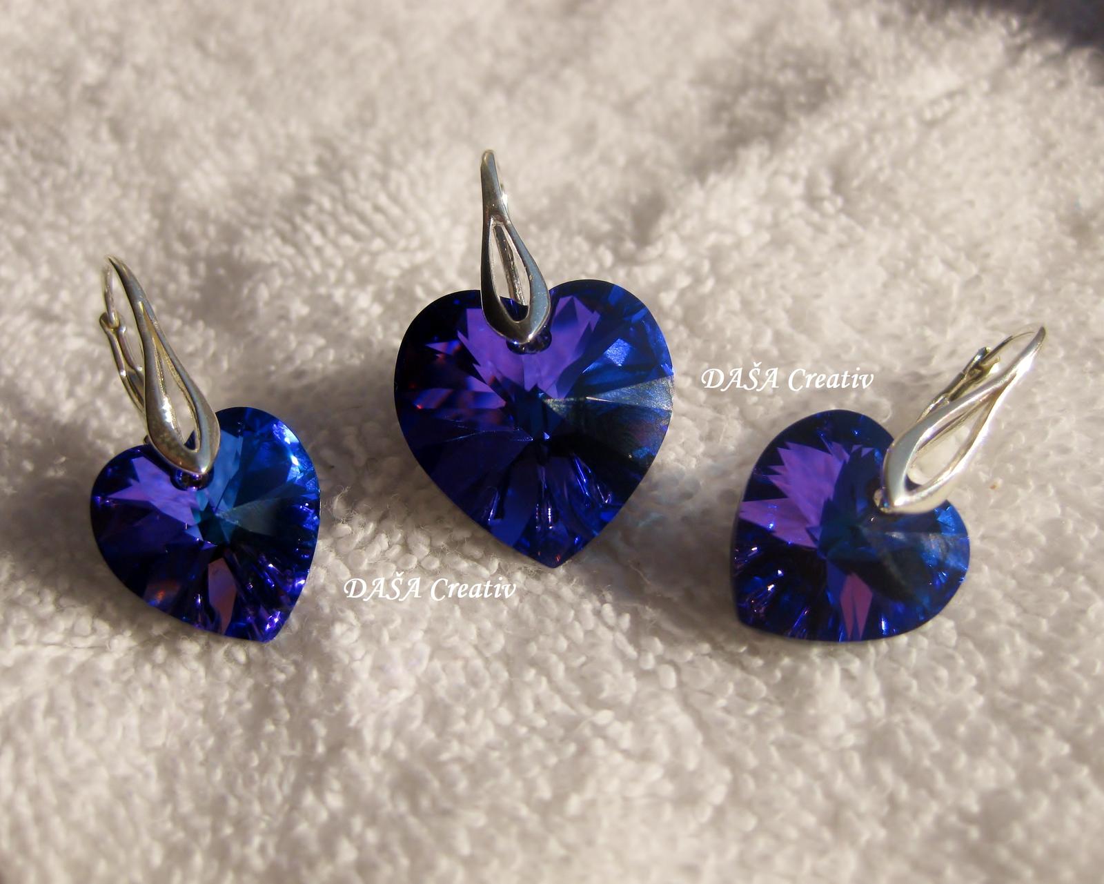 Náušničky - swarovski kryštál 14,4 mm, prívesok 18 mm, striebro Ag 925
