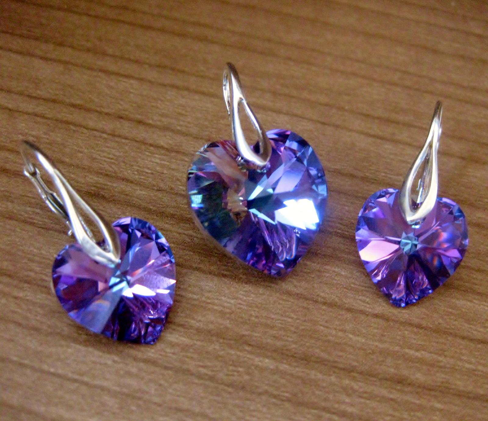 Náušničky - swarovski kryštál 14,4 mm, prívesok 18 mm, striebro Ag 925