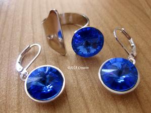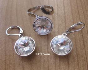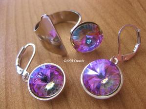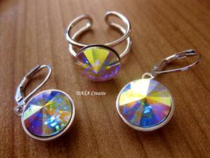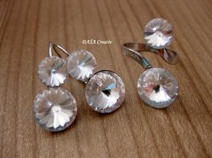 Náušničky + prsteň, swarovski kryštál, rhodium