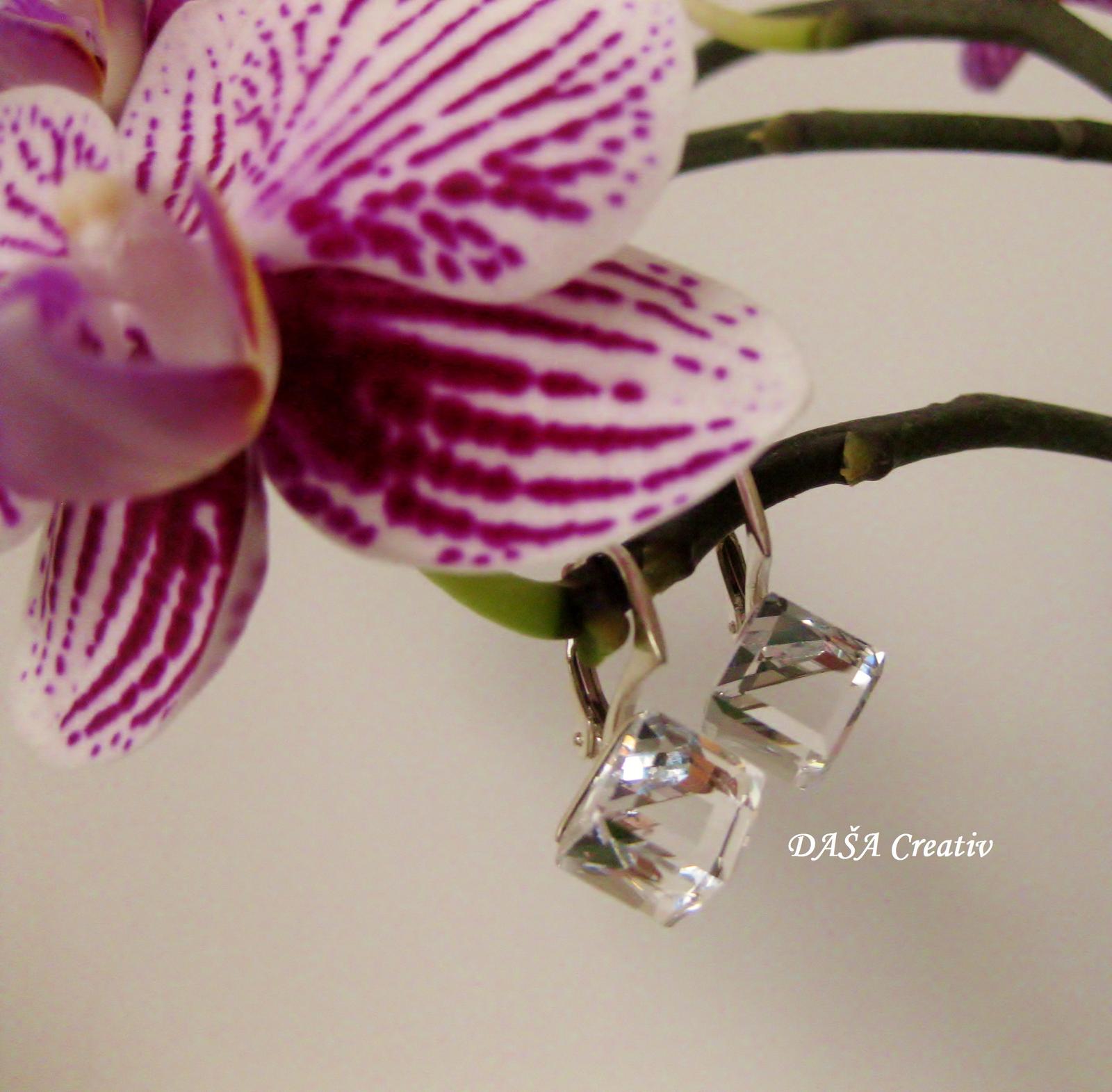 kocka 8 mm, číry kryštál, zapínanie striebro Ag 925 ,možnosť urobiť aj ako napichovačku