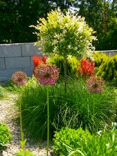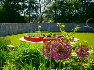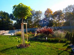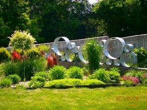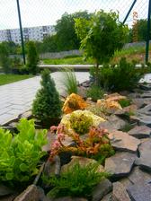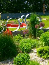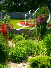 popis: ide o záhradu okolo rodinného domu. Pozemok záhrady je dostatočne veľký na to aby sme ho mohli opticky rozdeliť na úžitkovú časť záhrady a okrasnú časť záhrady. Okrasnú časť záhrady som riešila ako reprezentatívny priestor, na ktorý bude stále upriamený pohľad majiteľov záhrady. Ako deliaci optický prvok som použila pozinkované kruhy roznych veľkostí. Takto spracované kruhy sú ukladané na seba a vytvárajú priehľadné oplotenie veľmi príjemného a originálneho vzhľadu. Celá záhrada tak dostáva nový rozmer a stáva sa výnimočnou o čo sa usilujem v mojej projekcii. Každá záhrada má v sebe čaro a ide iba o to, správne ho vystihnúť. Potom sa záhrada pre nás stáva miestom kde možeme upokojiť našu dušu i myseľ.