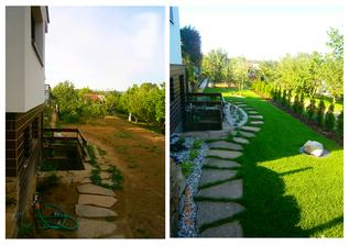 Pre porovnanie sú tu uverejnené fotky pred a po úprave záhrady.