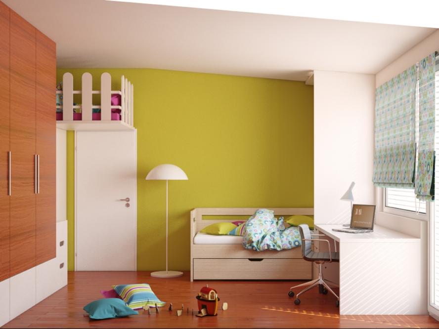 1. príklad: Pracovňa, spálňa a zároveň obývačka pre násť-ročnú slečnu.