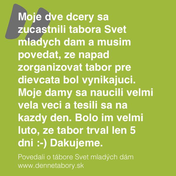 Sme radi, že dievčenský tábor sa nám čoraz viac osvedčuje: http://bit.ly/svet-mladych-dam