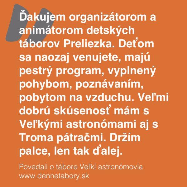 Tábor pre nekonečných zvedavcov, obľúbencov kozmických rakiet a skafandrov. O tábore Veľkí astronómovia hovorí aj jedna z mamičiek: http://bit.ly/velki-astronomovia