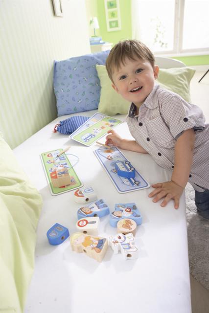 Skladanie puzzle ako predlohu pre navliekanie, navliekanie a voľná hra s figúrkami.