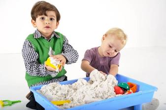 Piesok je hebký, veľmi príjemný na dotyk, podporuje rozvoj jemnej motoriky a spevňovanie svalov rúk.
