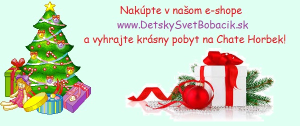 Nakúpte v našom e-shope krásne darčeky pre Vaše deti na Vianoce a vyhrajte pobyt na Chate Horbek. Bližšie info na http://www.detskysvetbobacik.sk/aktualita.php?i...
