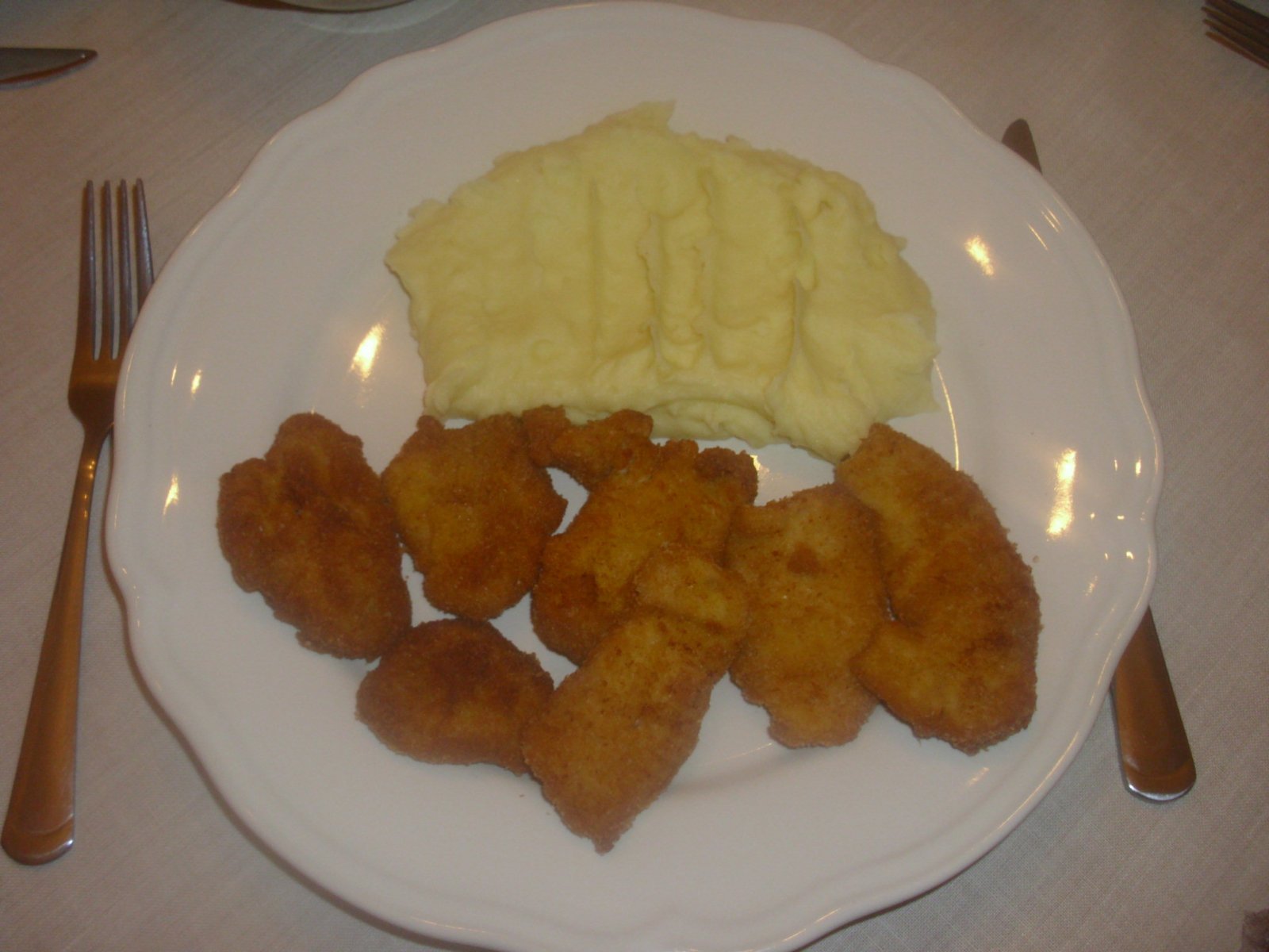 kuracie nugetky+zemiakova kasa+uhorkovy salat