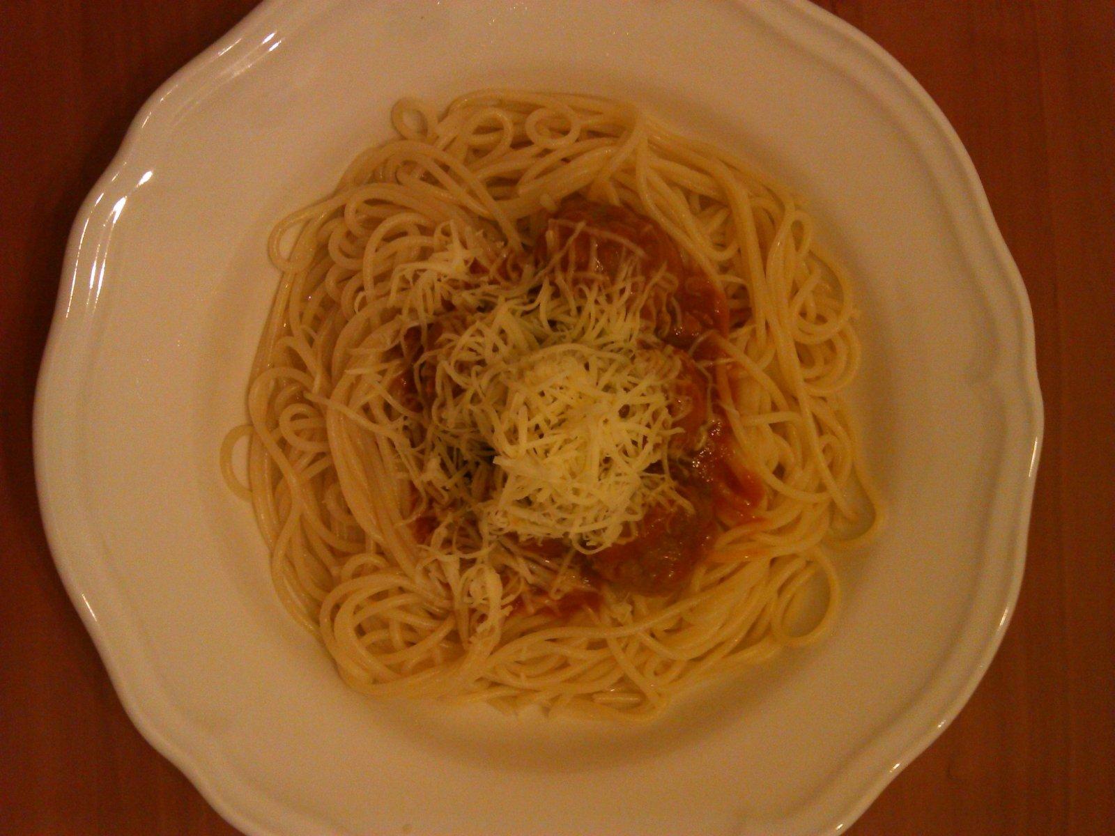 50cm spagety +masove gulicky+ omacka +syr mnamka :)