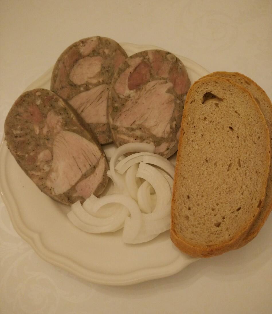 Domáca tlačenka +cibula+biely ocot+chleba