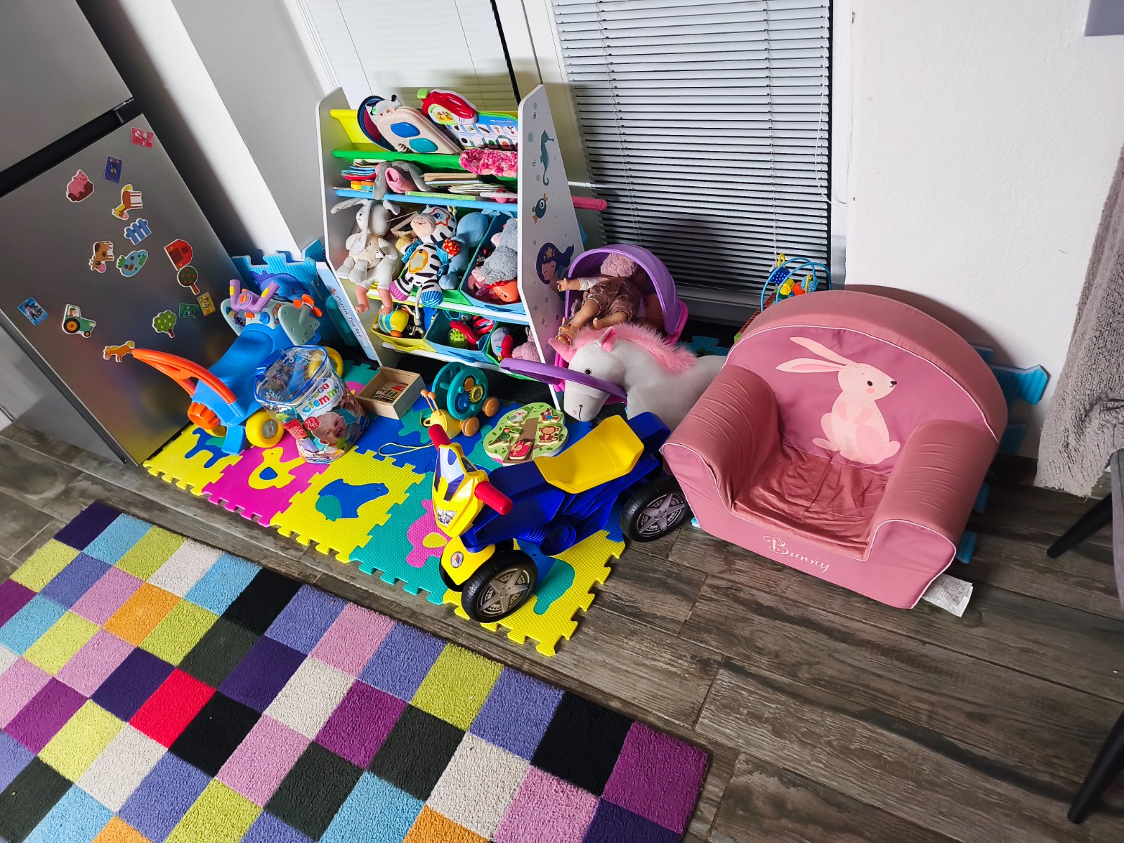 My mame podobny, v kutiku v kuchyni... Na velke hracky to nie je, ale somarcin sa tam zmesti hromada 🤣🤣🤣🤣