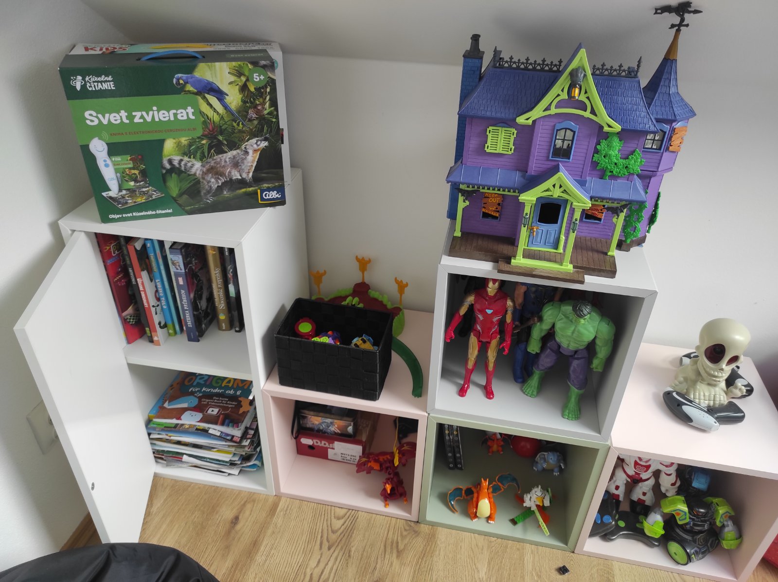 Väčšie veci tam máš problém vtrepať. Viď tie bábiky dole. Do každého boxu Max dve dám a vyzerá to chaoticky 😀