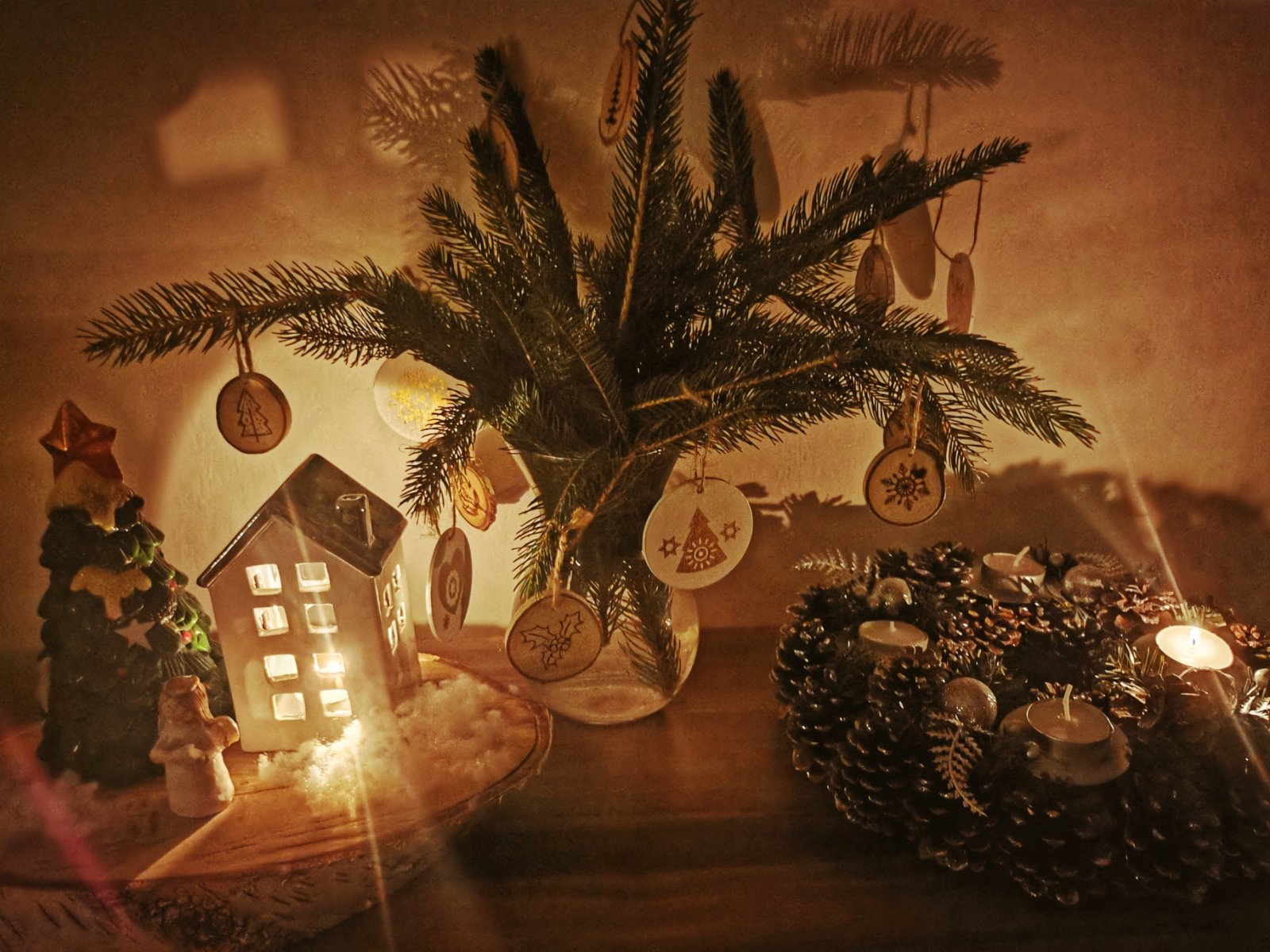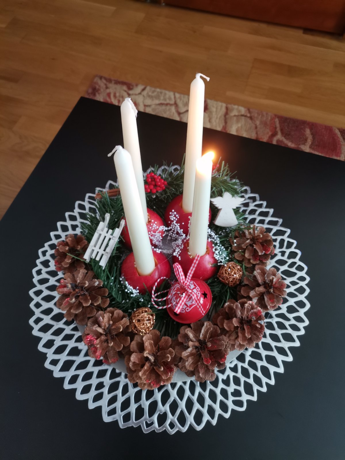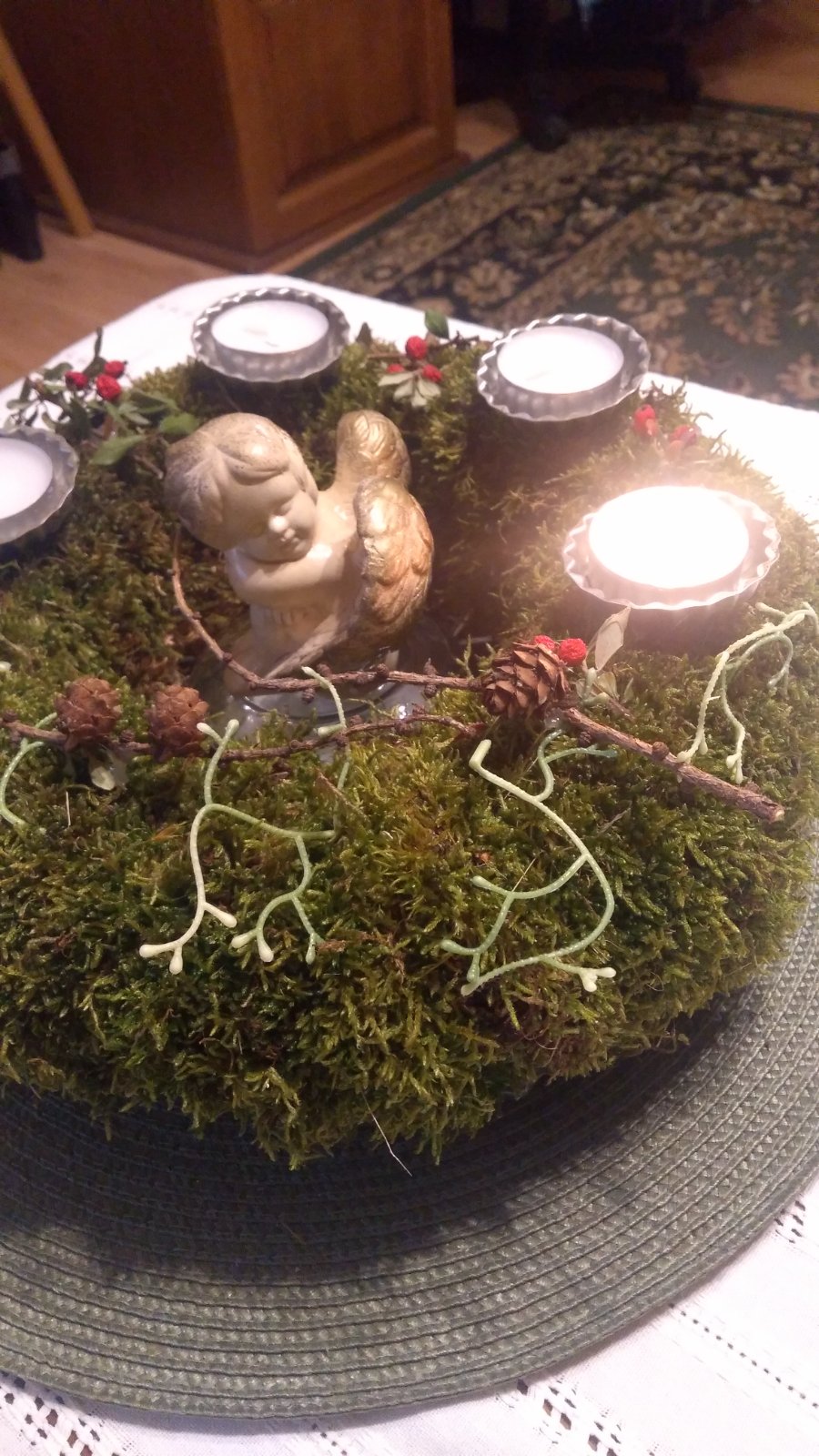 Aj my sme zabudli na sviečky, dali sme čajové 😁 Venček máme každoročný šiškovy. Zajtra budeme vyrábať cecinove 💪