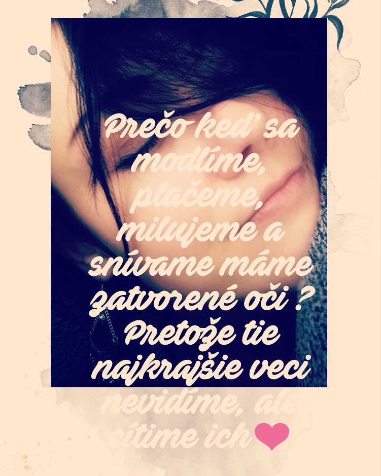Prečo zatvárame oči keď sa modlíme, plačeme, milujeme a snívame?Pretože vie, že tie najkrajšie veci nevidíme, ale cítime ich❤️