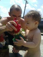 To je teda Majocka.v....my sme im tam dali teplu vodicku a posadili ich dovnutra s hrackami a sami zacali vyliezat von a potom zase dnu a tak stale dookola az kym nebola vodicka spinava :o!