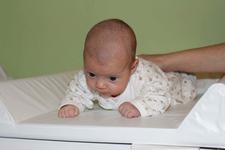 Tak male babatko nie.nepomahaj mu davat sa na brusko respektive ho nepretacaj.normalne ho na to brusko poloz ako ti pisu hore.takto mu skor ublizis ved ma len mesiac