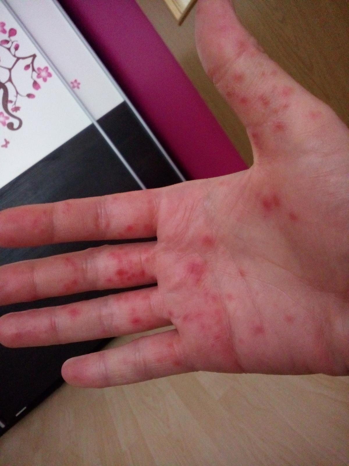 Na 99% su to ruky, nohy, usta, prejde to same do tyzdna, ale je to velmi neprijemne, my sme to mali cez leto vsetci doma, na foto je moja ruka, teraz mi schadzaju 2 nechty..