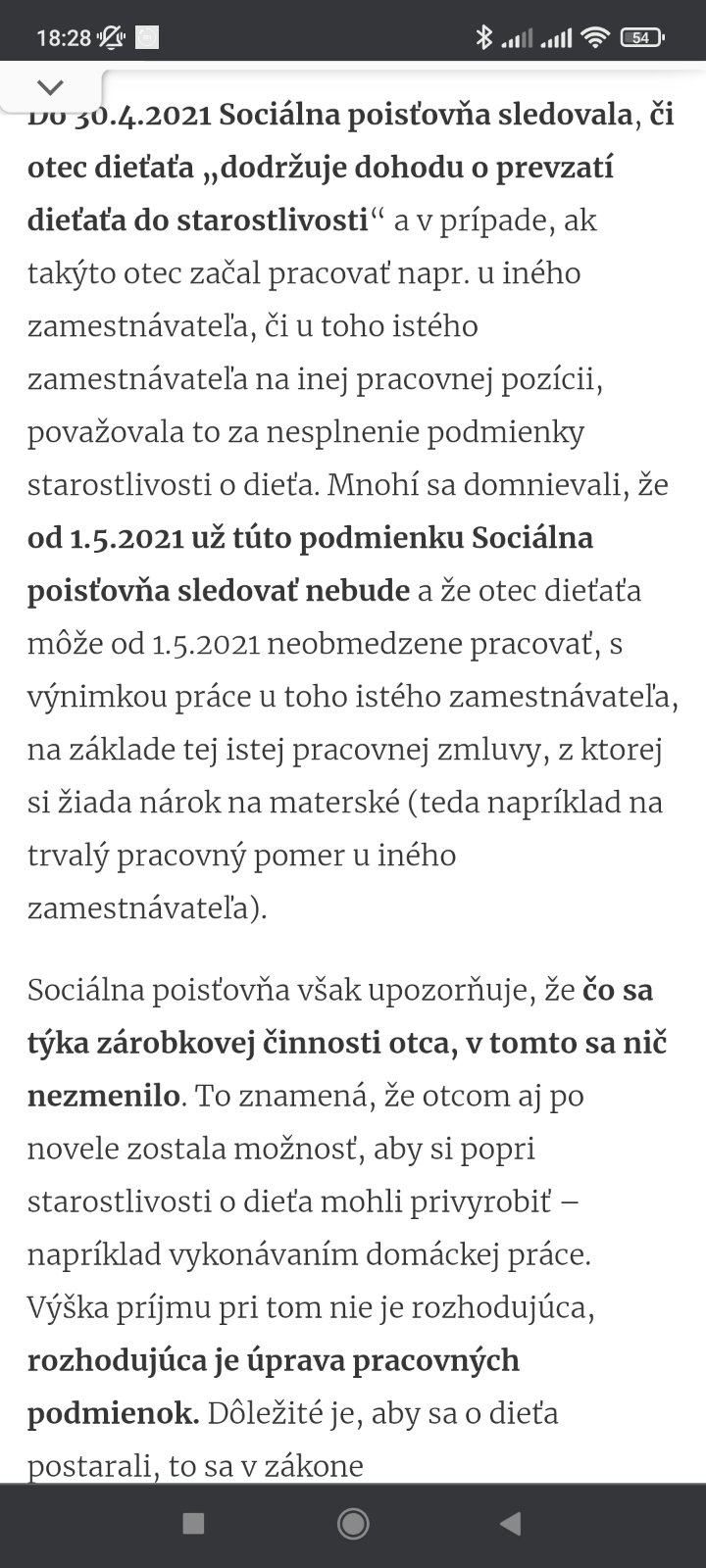 No akurát som to našla že pracovať nemôže 😒😒 tak neviem ako to tí chlapi potom robia že sú na materskej a robia inde..asi na čierno či? Lebo veď sociálka odvodi vidí..🤔