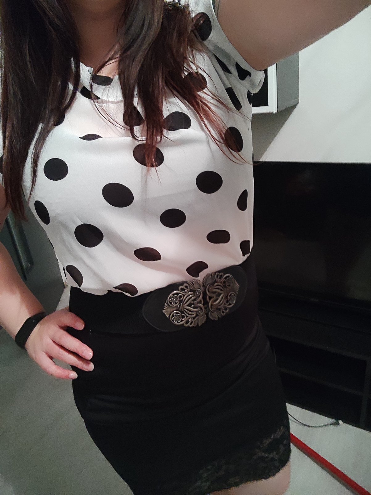 @dollyzv ak si nestihas ísť niečo kúpiť tak úplne najlepšie z toho je ten bodkovaný top a čierna sukňa.