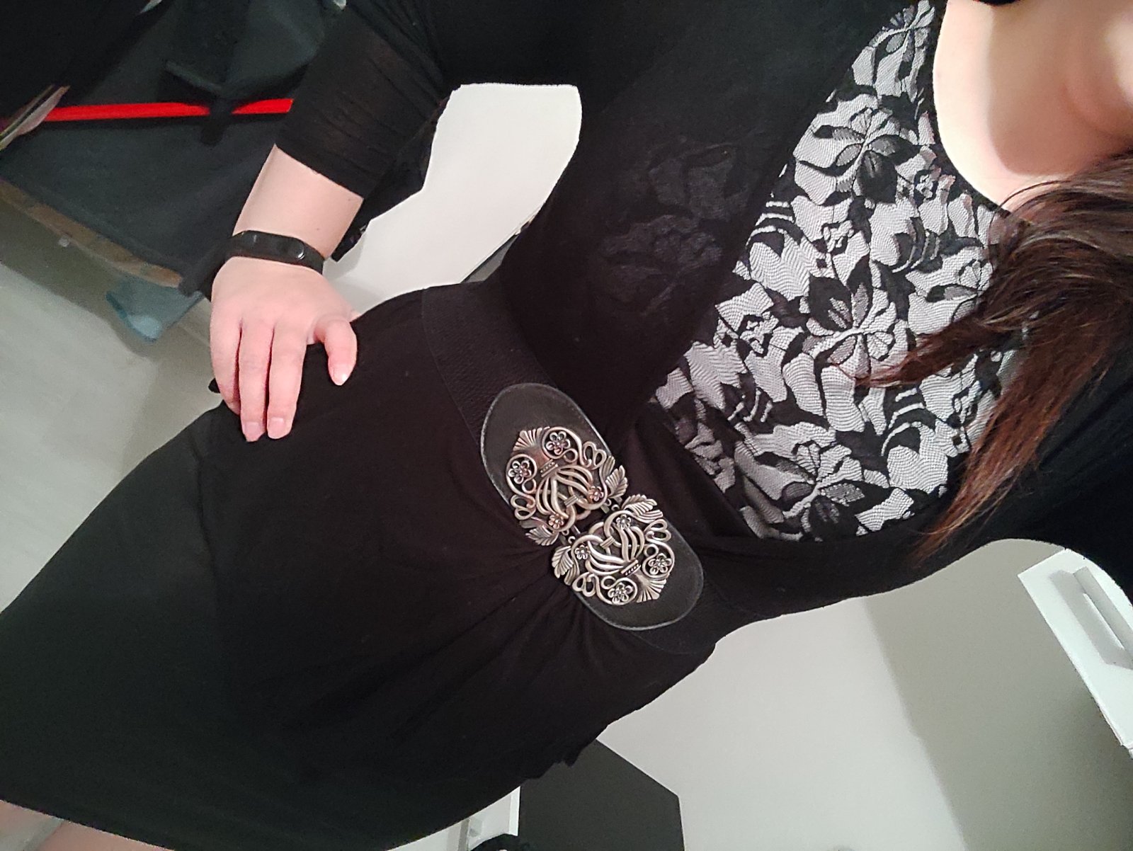 Samozrejme lepšia by bola bez čipky, bez opasku s nejakým pekným moderným sakom, ale ak si musíš vybrať z toho čo máš toto je podľa mňa najkrajšie z tých veci.