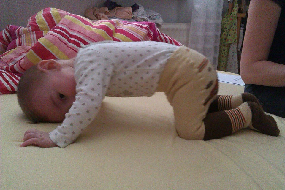 autorTak to asi zaleži ako sa detičkam chce 🙂 mne sa váľa po posteli vôbec kľudne nedokaže ležať ani v kočiari 😀 v kuse sa otača na bruško, z bruška na chrbatik a stale dookola a potom aj takto na kolienka 🙂