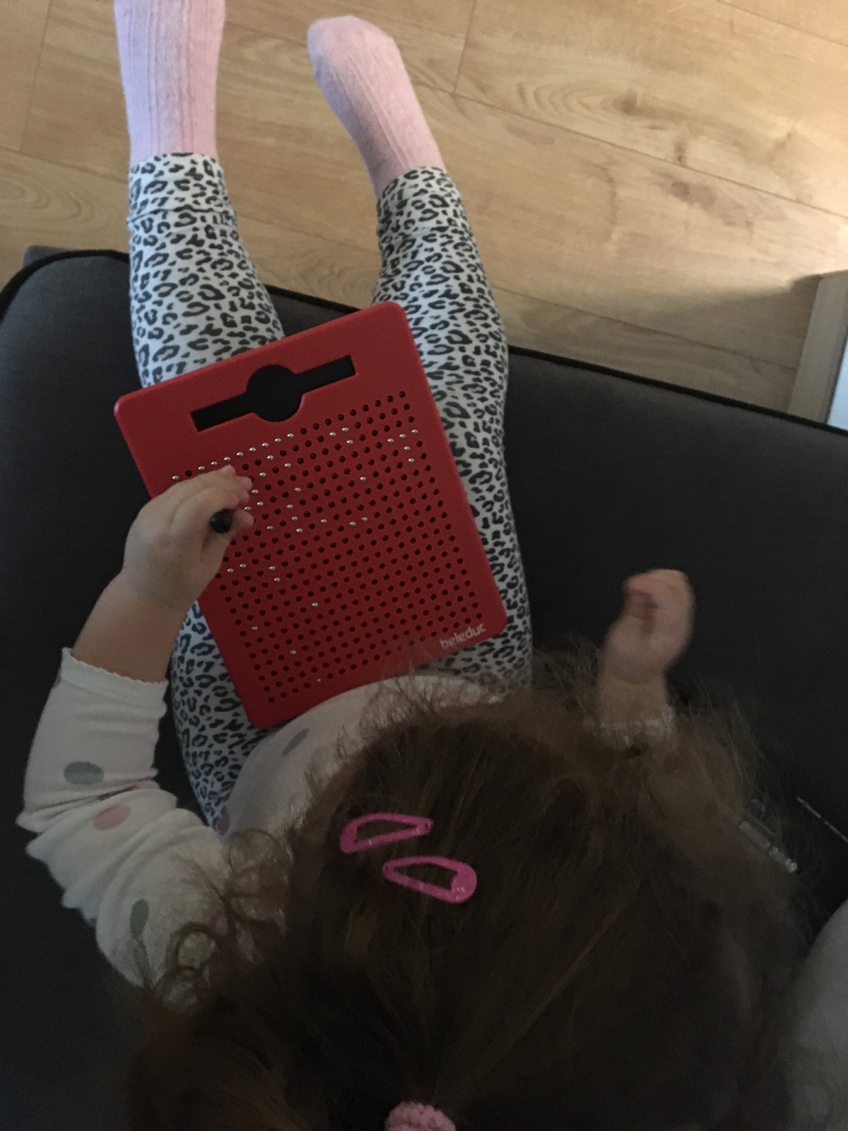 Magnetická tabuľka s gulickami a magnet perom na vyberanie guliciek 🙂