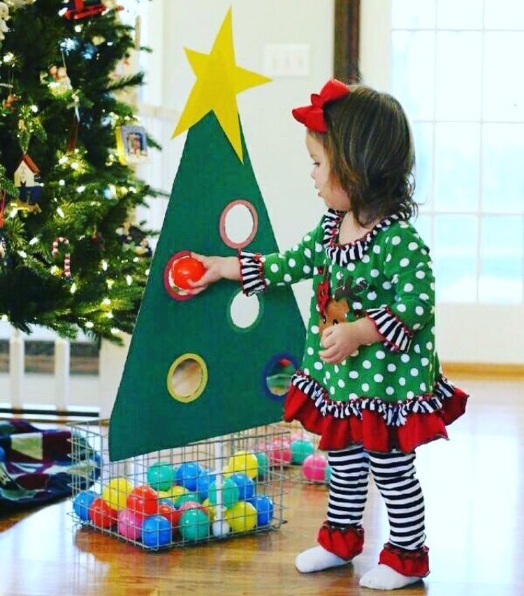 Vianočná aktivita hádzania loptičiek cez správne farby v otvoroch🙂