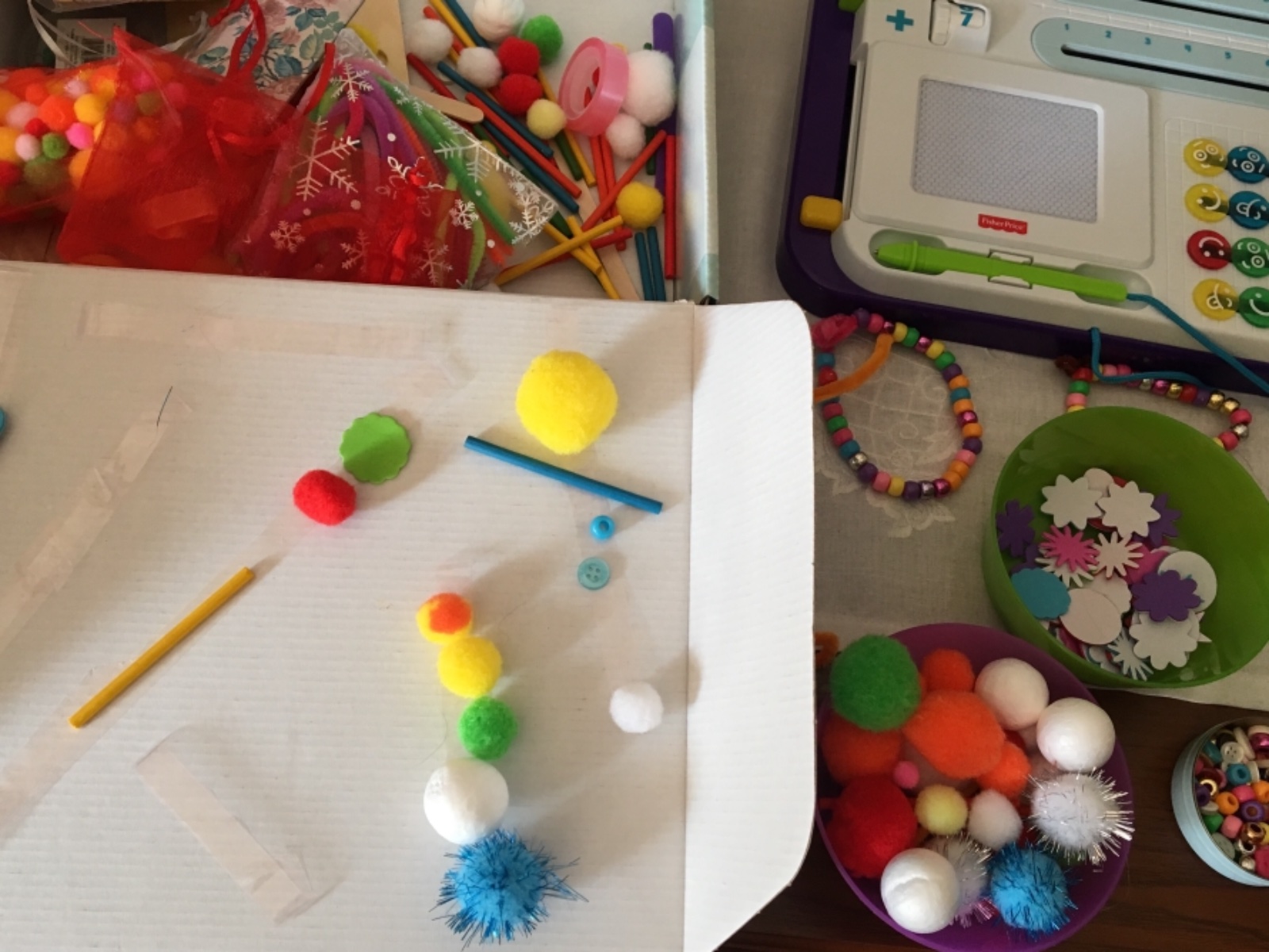 Obojstranná lepiaca páska a prilepovanie pompom, gombíkov, paličiek