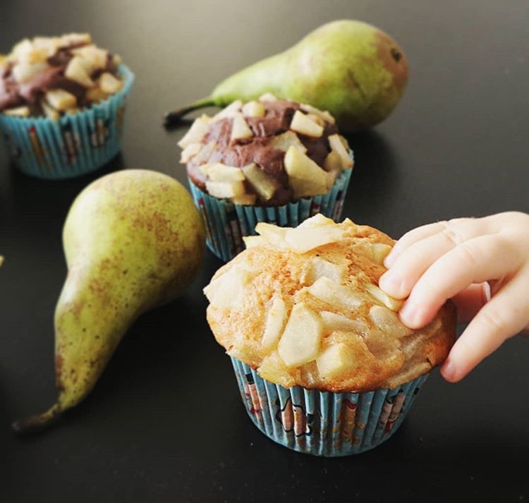 Postup: 🍐Zmiešame všetky mokré ingrediencie a primiešame preosiatu múku s kypriacím práškom a kakaom. 🍐Vypracujeme cesto, do ktorého nakoniec zamiešame na kúsky nakrájané hrušky. Cesto rovnomerne rozdelíme do košíčkov, ktorými sme si vyložili formu na muffiny. 🍐Pripravenú formu dáme do vopred vyhriatej rúry a pečieme pri teplote 200 °C asi 20 minút.
