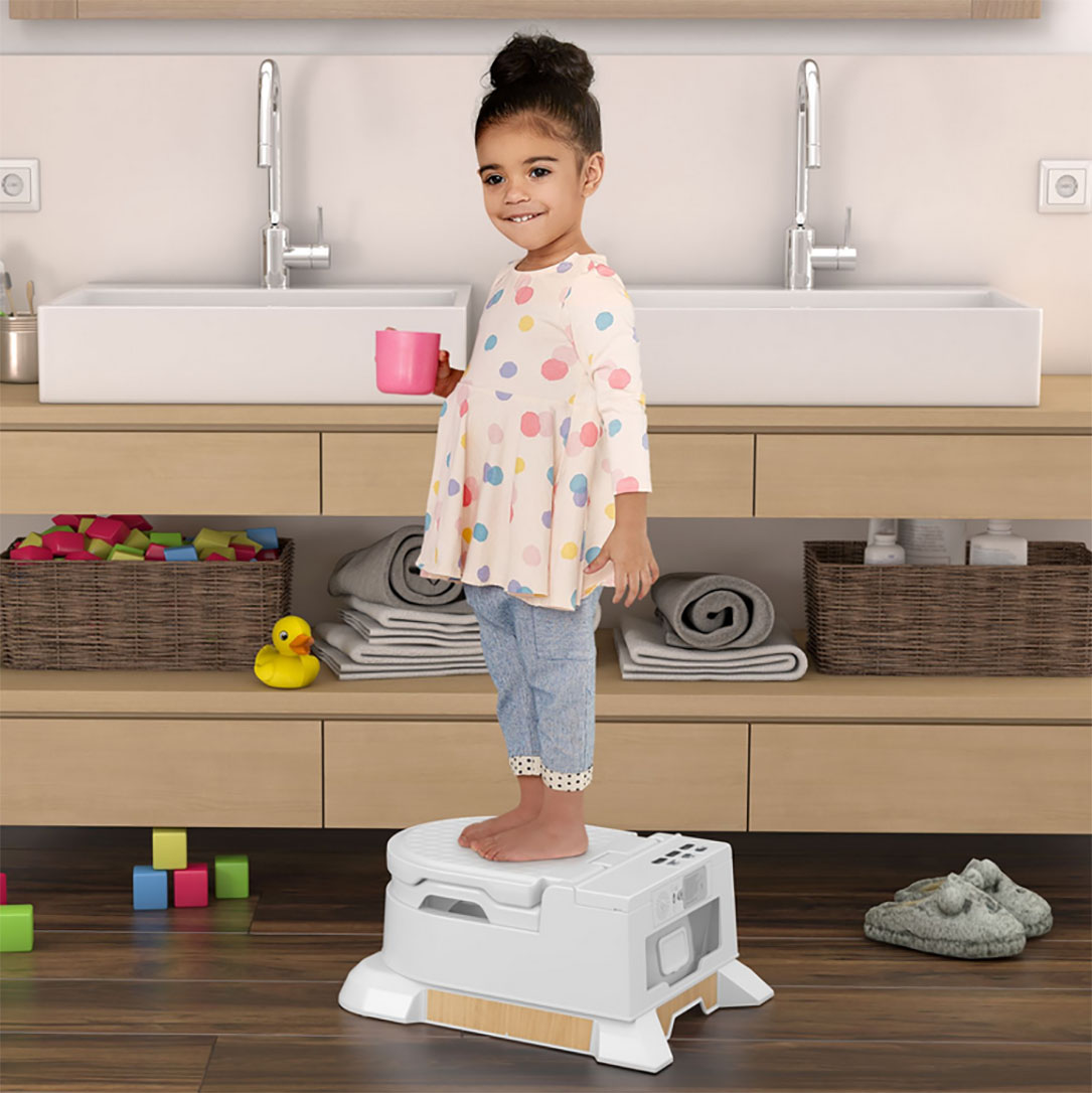 Tretia adventná súťaž s Fisher-Price je ako ušitá na mieru pre všetkých veľkáčov, ktorí sa rozhodli úspešne zbaviť plienok! 😀 S nočníkom 4 v 1 im to pôjde ako po masielku. Tento mini záchodík poslúži aj ako stolička, či podsedák a navyše má vlastné zvuky splachovania a umývania rúk čím drobca pekne upozorní k základnej hygiene po potrebe. Na zadnej strane sa nachádza aj otvor pre vlhčené utierky. 😉 Takže bez debaty, lepšiu toaletu pre svoj poklad isto nenájdete! 😀