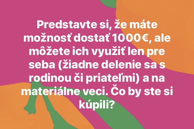 Najskôr som prečítala že nemateriálne, to ma napadlo urobiť si konečne vodičák. Potom teda že materiálne, tak by som si konečne kúpila niečo na seba