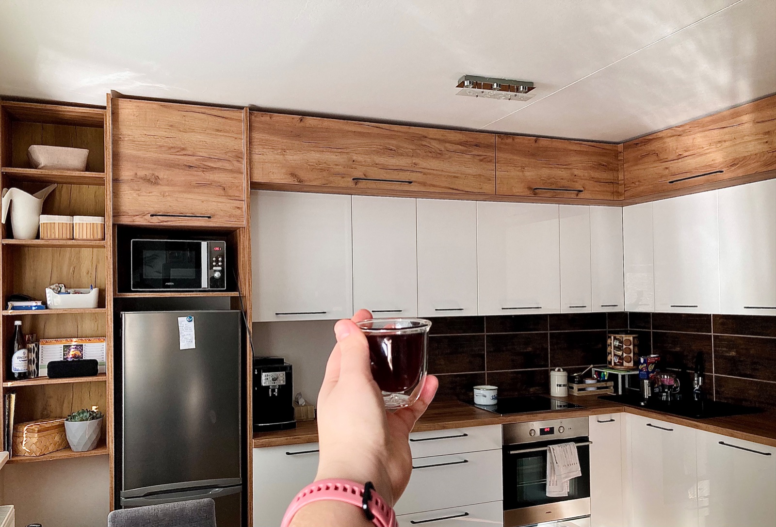 Kuchyňa mi už pár dni robí veľkú radosť 😍😁💪🏼 Ale teraz otázočka na vás baby 🙂🙏🏻 Čo dať na miesto kachličiek? Sklo alebo drevený obklad?