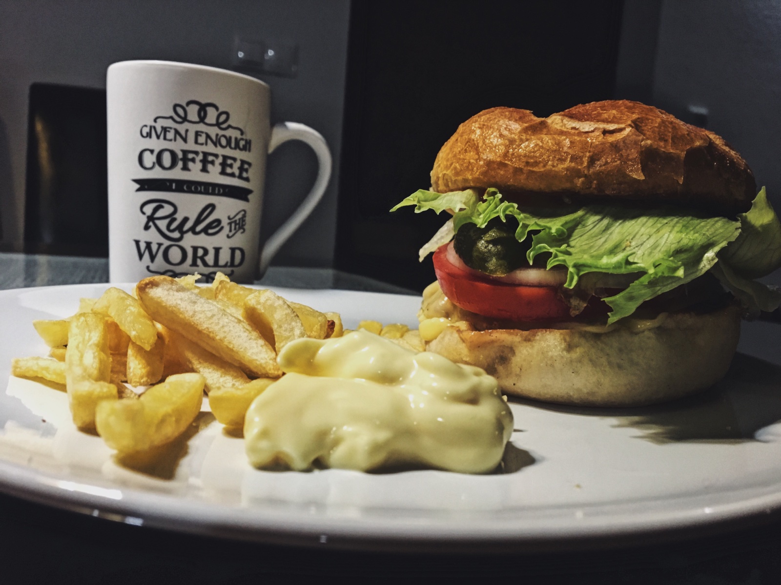 @freeze24 Mleté hovädzie mäso urobí na panvičke na minimálne tuku, celý cesnak dáva do panvice. Len tak pre chuť. Ten tuk tú chuť cesnaku nasaje. Potom si pripraví žemľu, zohreje ju bez tuku na panvici, len jednu časť. Potom si na tú časť skladá, cibuľku posekanú najemno alebo niekedy na krúžkya keď má cibuľku na krúžky, tak ju dá spolu urobiť s tým mäskom, šalát, dresing, plátky rajčiny, plátky syra, plátok čerstvej uhorky alebo aj zaváranej, a to mäsko keď je už hotové. K tomu podáva kečup, tatársku, dresing, alebo kto čo chce a hranolky 🙂 Dobrú chuť.
